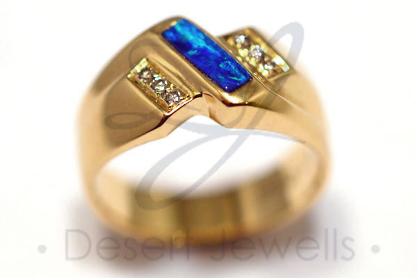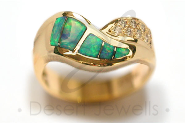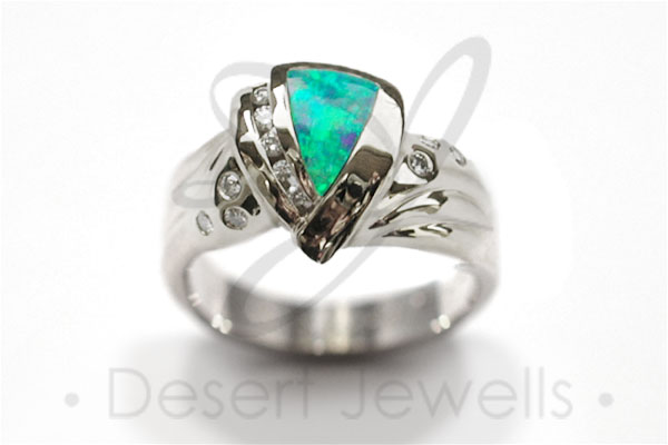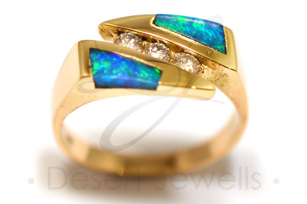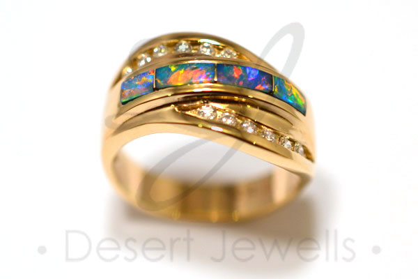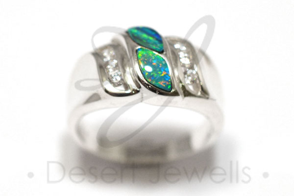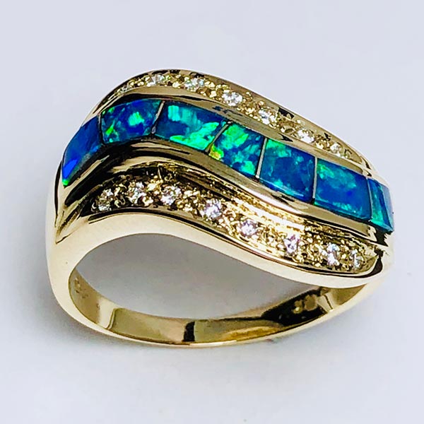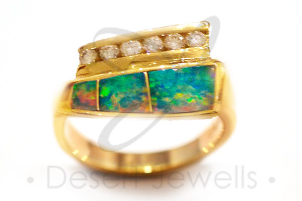 Gem quality inlay Opal ring with diamonds (7 grams).