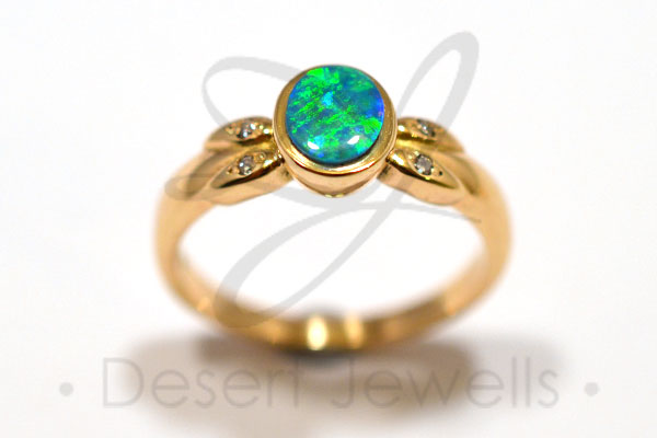 Solid gem quality Opal ring with diamonds on the shoulders.