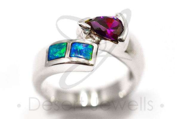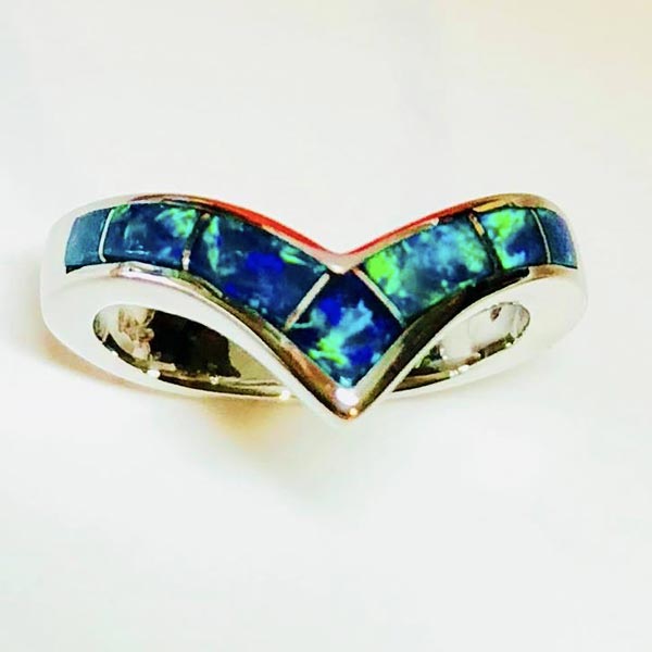 Fine quality inlayed Opal ring, and can be worn with another ring.