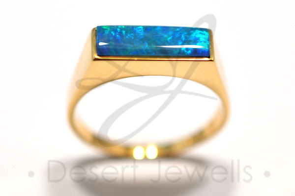 Rectangle shaped, handcrafted Andamooka Opal ring.